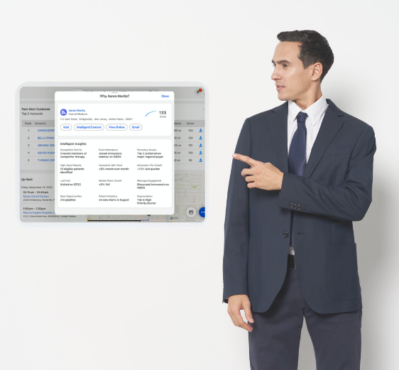- Engagement & Interaction Management: Structured capture of sales and medical interactions to support coordinated planning and compliant follow-ups.